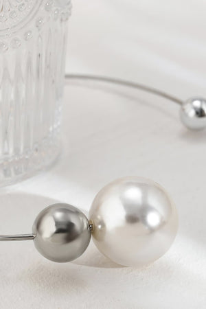 The Women's Gold-Toned Open Collar Pearl Necklace features a rigid, open-collar structure. Made from lightweight alloy, its minimalist form suits women seeking simple accessories for casual wear. The design emphasizes clean lines and a polished surface for a cohesive appearance.- Adjustable Shape: Open-collar structure fits comfortably around the neck without a clasp.