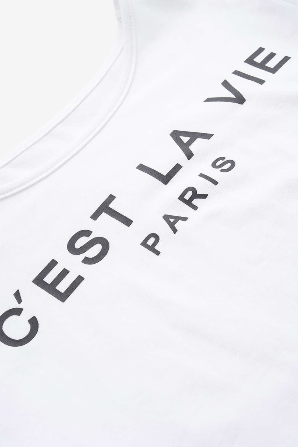 - Graphic print: Displays a text-based design on the chest for focal detailing.