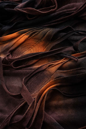 - Tie-Dye Pattern: Brown and orange design varies slightly per dress.