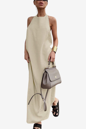 Women’s Halter Neck Sleeveless Maxi Dress – Summer Linen