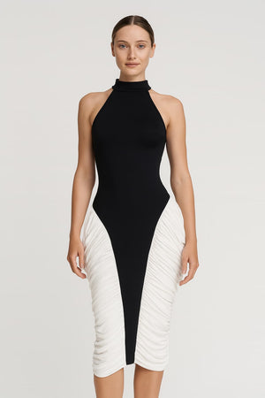Women's Halter Neck Sleeveless Midi Bodycon Dress