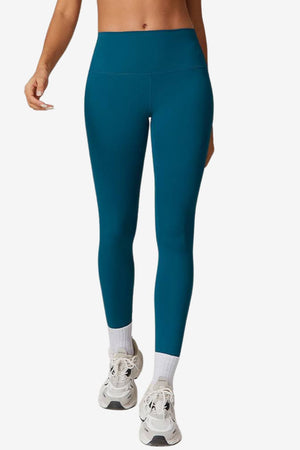 These full-length leggings feature a high-waisted design with a close fit and smooth exterior surface. Developed for daily wear or active use, the shape follows body contours without added detailing. The fabric offers soft structure and extended coverage, suitable for layered looks or individual wear.- High-rise waistband: Designed to sit above the hips with a wide band for a defined upper shape.