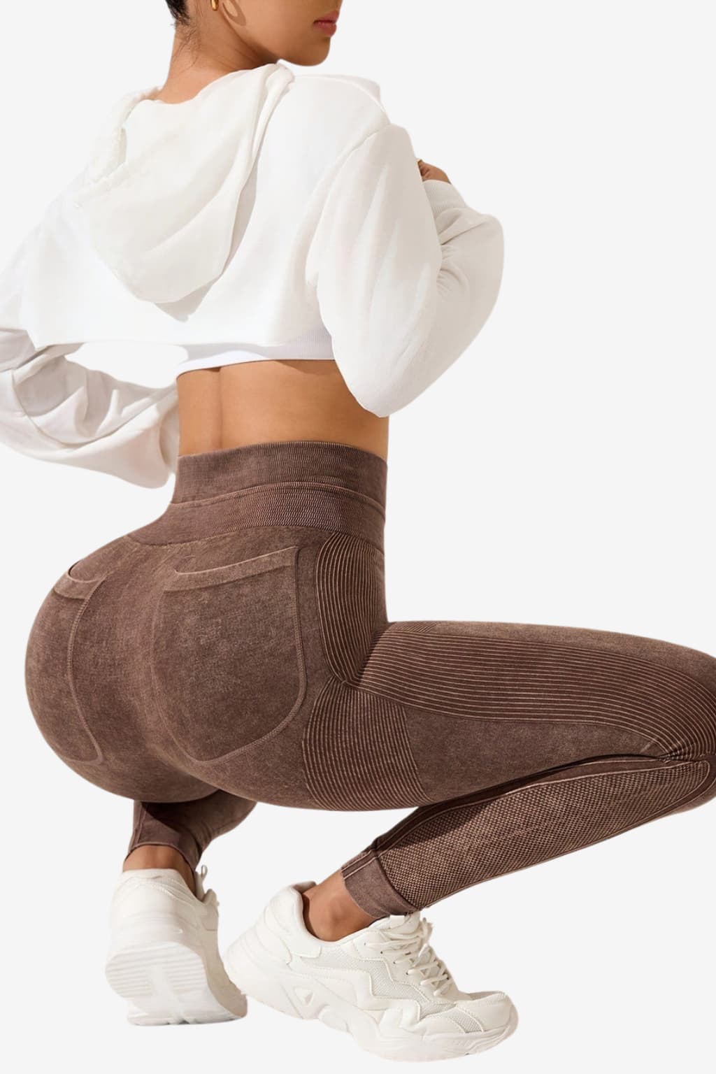 These women’s high waist leggings feature a close-fitting shape with practical design features, offering stability with flexible form. Intended for varied activities or routine wear, they combine a smooth outer surface with a subtly textured weave. Suitable for those looking for a fitted garment with adaptable styling options.- High-rise waistband: Constructed with a wide band that maintains position at the waist to support consistent wear through motion.