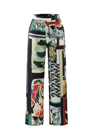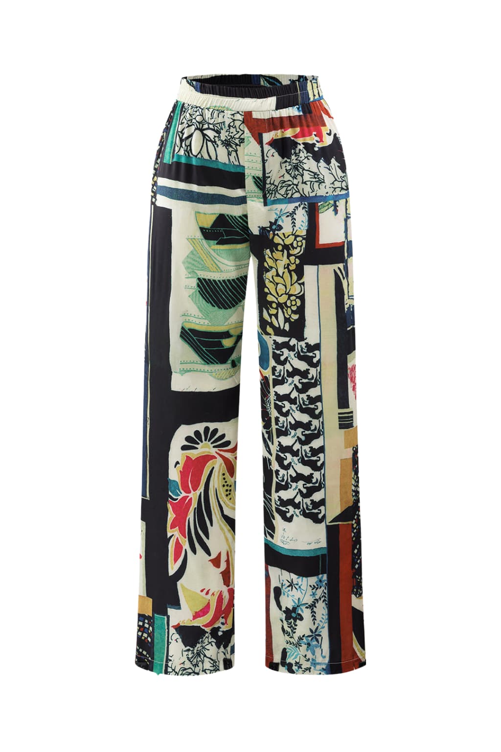 These women’s wide-leg printed trousers feature a loose-fitting shape and full-length print. Designed with a soft-textured, lightweight surface and an easy pull-on waistband, they are suitable for informal use or warm conditions. The cut allows for room throughout, with a high-rise waist designed to sit securely around the midsection.- Wide-leg cut: Structured to fall loosely from the hips to the hem, allowing room during motion.