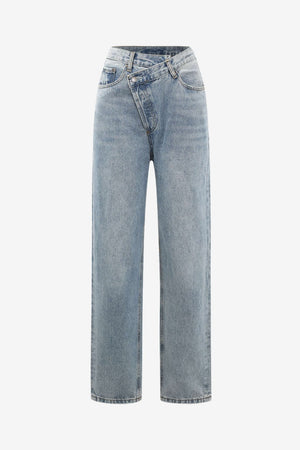 These wide-leg jeans feature a high-rise waist and contrast lace inserts positioned along the legs. Designed with a structured silhouette and functional storage layout, the piece offers consistent form and visual variation for casual and transitional use.- High-rise fit: Waistband sits above the hips to define the upper profile and support a straight leg shape.