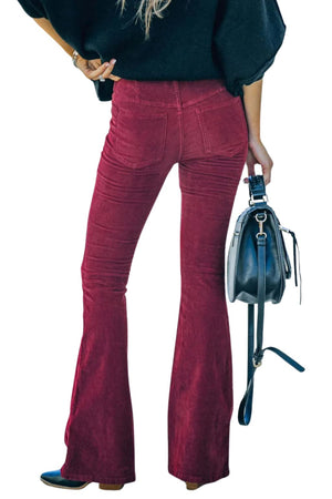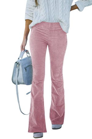 Women's High-Waisted Flare Trousers feature a fitted silhouette with flared legs. Made from a soft, textured fabric, they suit daily wear. The design emphasizes a structured fit, ideal for women seeking a versatile garment for various occasions.- Fitted Structure: High-waisted, snug through hips and thighs, suits multiple body shapes.