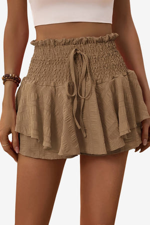 High-Waisted Ruffle Shorts with Drawstring