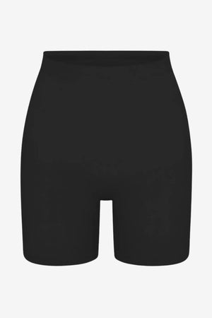 These high-waisted seamless shorts feature a minimalist structure designed to function as a base layer beneath different types of clothing. With a smooth waistband and mid-thigh length, they offer consistent coverage and a flat surface. Suitable for individuals seeking a shaped underlayer with a close-to-body form and low-profile finish.- High-rise waistband: Includes a wide band positioned above the waistline to create a stable upper edge without requiring adjustments.
