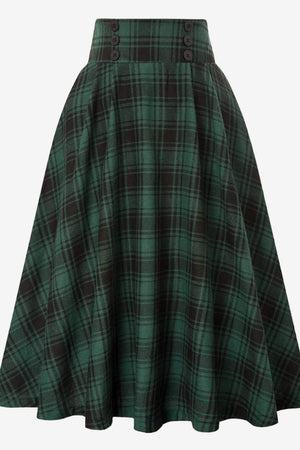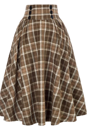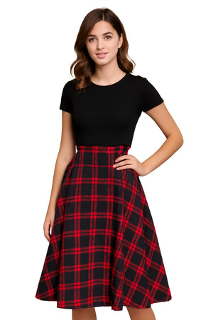The Women's High-Waisted Tartan Midi Skirt features an A-line shape with a traditional tartan pattern. Made from a smooth, woven fabric, it provides a structured fit for women seeking a vintage-inspired style for casual or formal settings.- Flattering Shape: High-waisted A-line silhouette with pleated waist for varied body types.