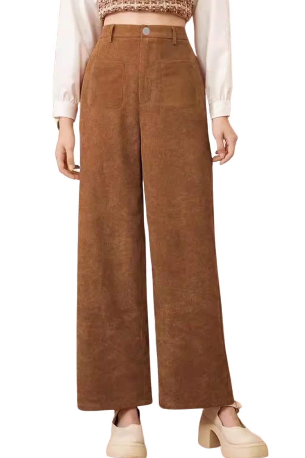 Women's High-Waisted Wide - Leg Corduroy Trousers
