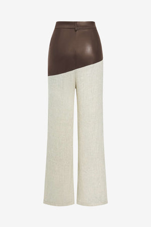 - Contrast Panels: Black smooth panels from waist to thigh, paired with beige textile.