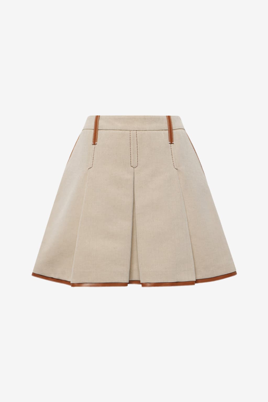 Women's Khaki Pleated Mini Skirt A-line Loose Fit
