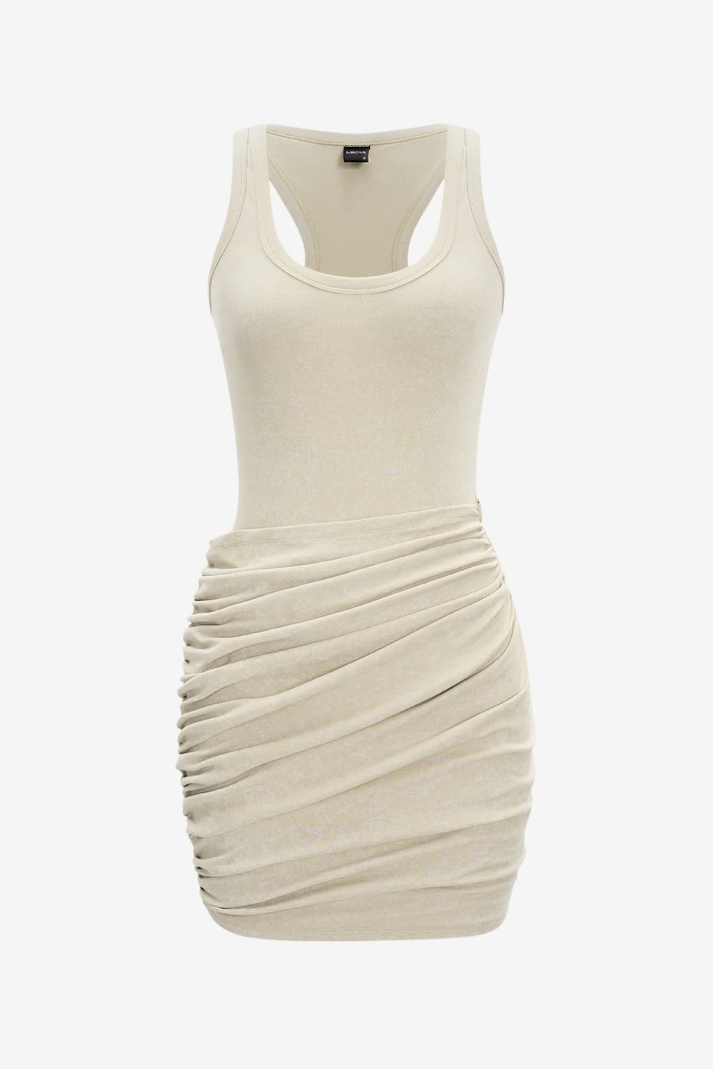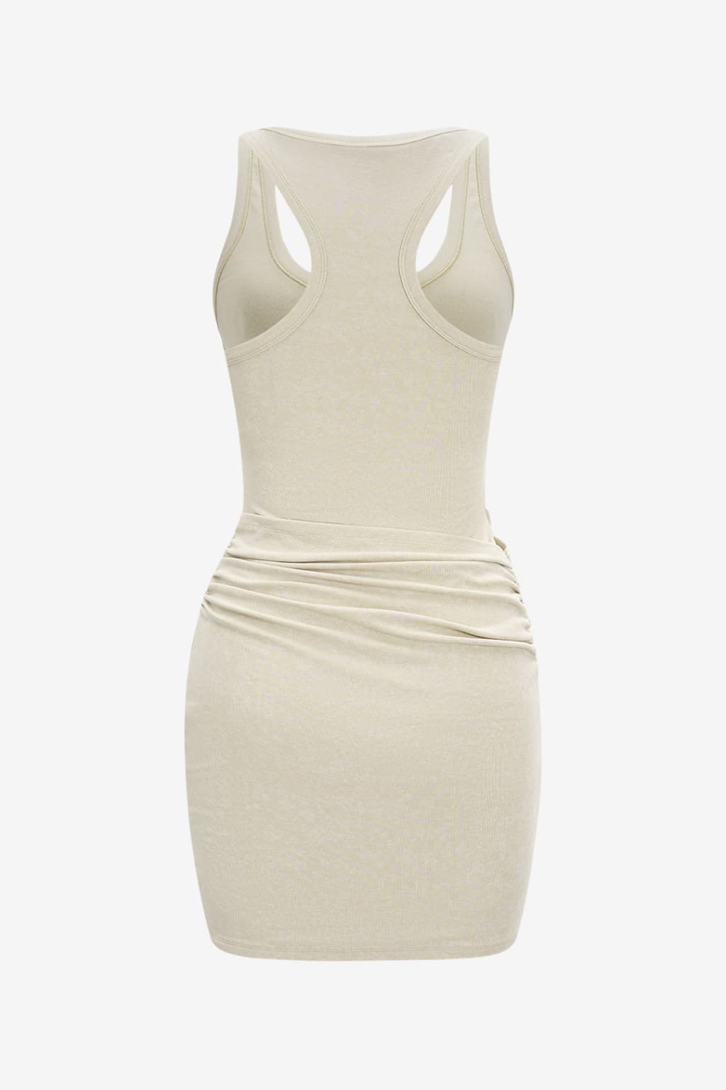 Women's Khaki Sleeveless Ruched Bodycon Mini Dress
