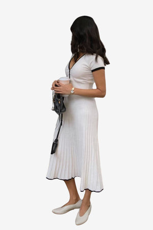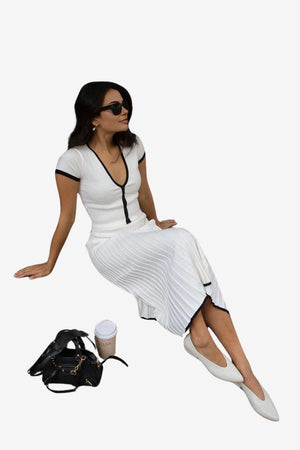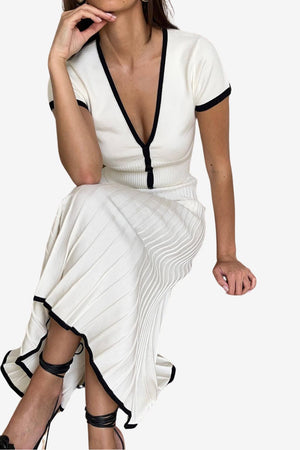 Women’s Knit Skirt Set V-Neck Top & Pleated Midi Skirt