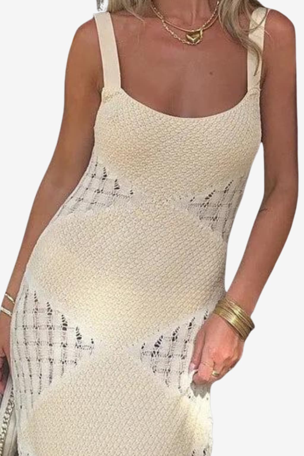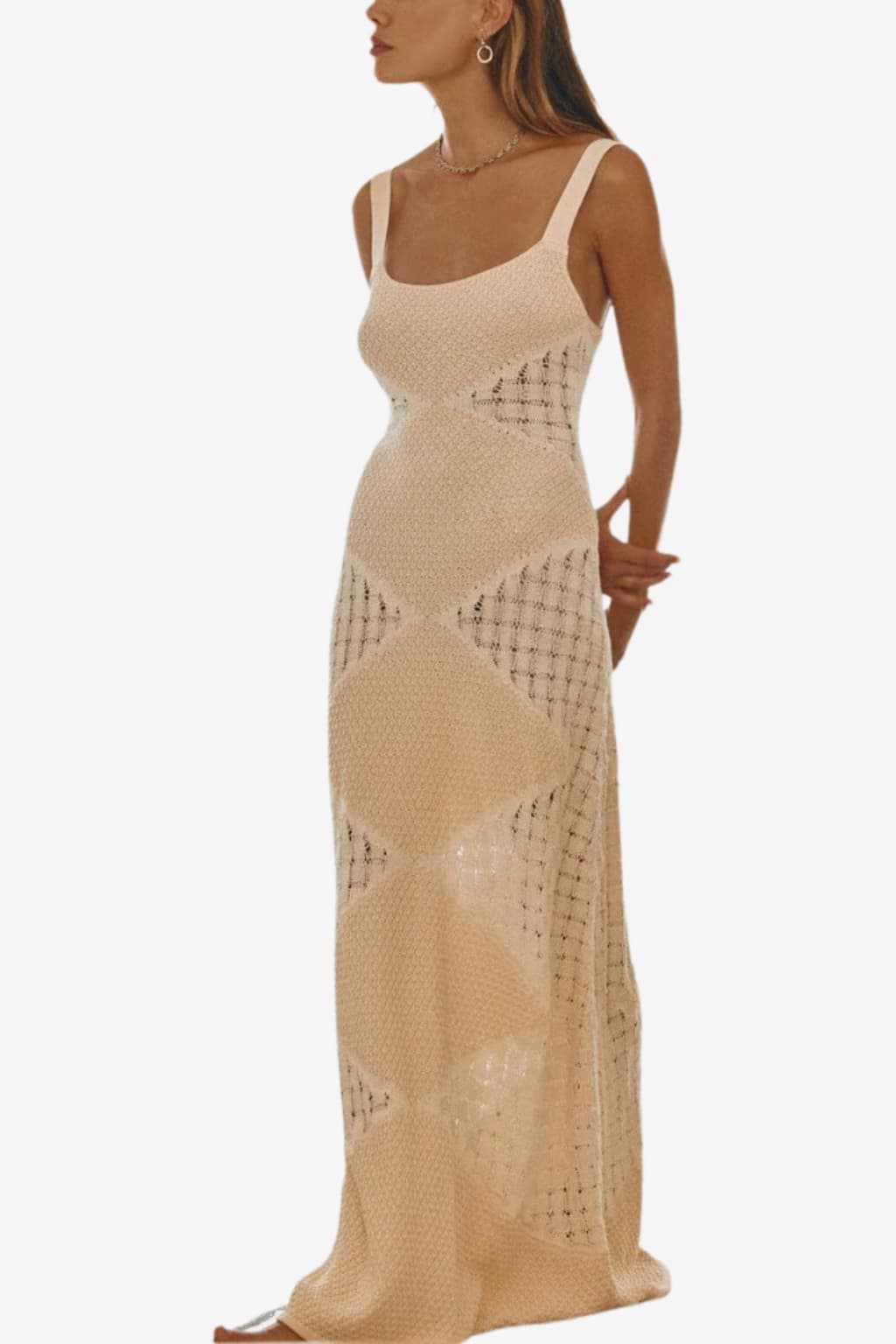 Women’s Knitted Maxi Dress with Square Neckline