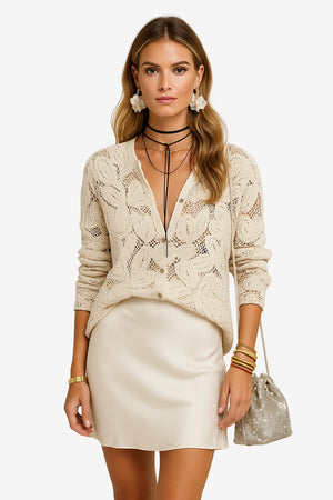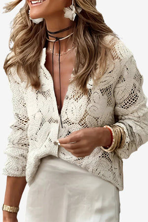 Women’s Lace Button Down Blouse Long Sleeve Top