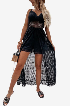 Women’s Lace Maxi Dress with Slit and Spaghetti Straps