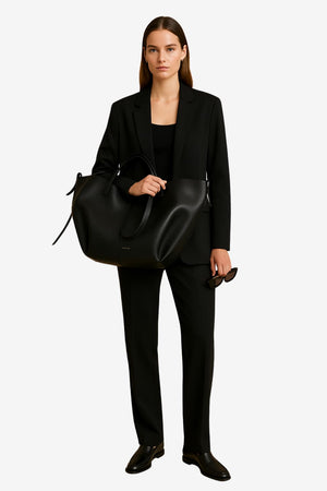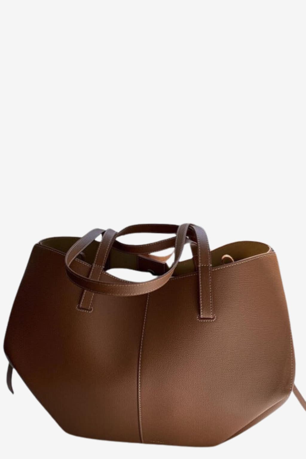 This large tote bag features a geometric form and spacious inner section, designed to support a range of daily needs. Equipped with both hand and shoulder-carrying options, the layout emphasizes utility and visual consistency. The textured surface and straight-line shaping offer a structured profile for everyday use.- Structured form: Defined outline maintains shape and presents a consistent front and side profile.