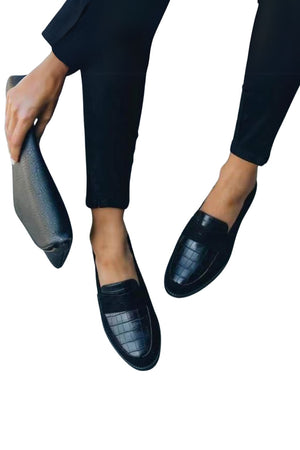 Classic Crocodile-Textured Loafer Mules for All Seasons