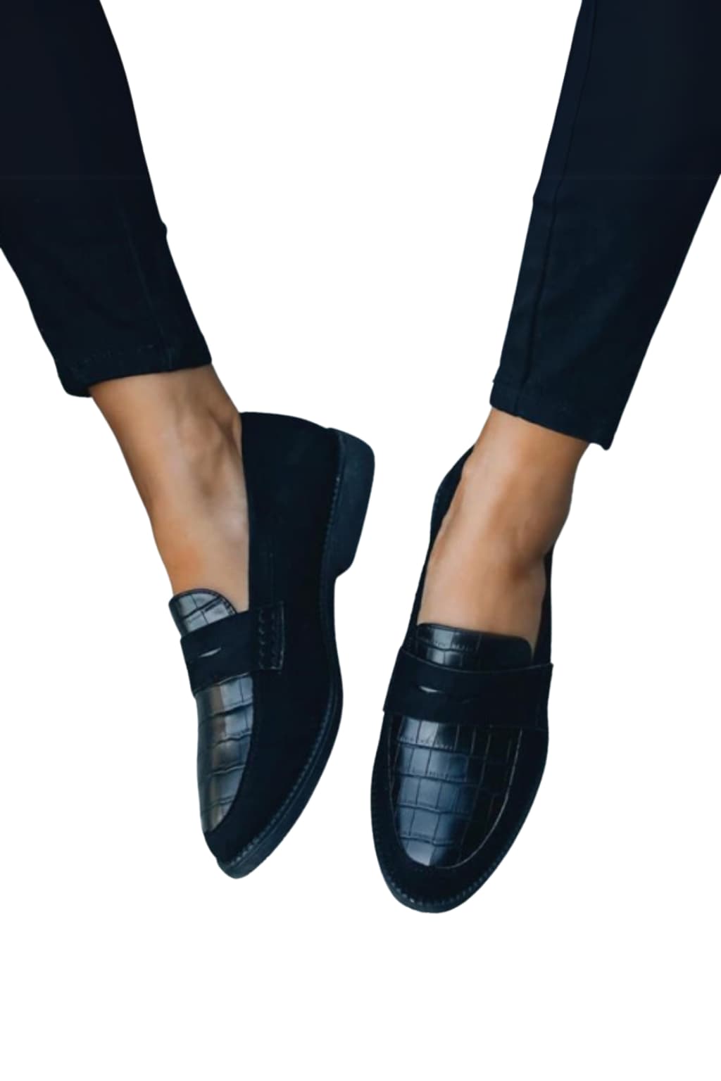 Women's Loafer Mules are slip-on, backless shoes with a crocodile-textured front and smooth panel. Made with a smooth, structured surface, they fit various foot shapes and suit office or casual settings for a versatile style.- Slip-On Design: Easy to wear with a spacious toe area.