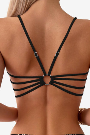 - Structured multi-strap back and sides: Elastic strap elements with circular details create symmetrical lines and visible structure.