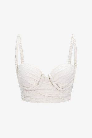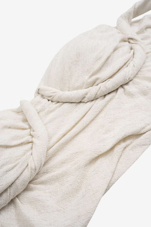 - Sweetheart Neckline: Structured neckline with a central knot detail.