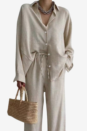 Women’s Linen Shirt and Wide-Leg Trouser Set