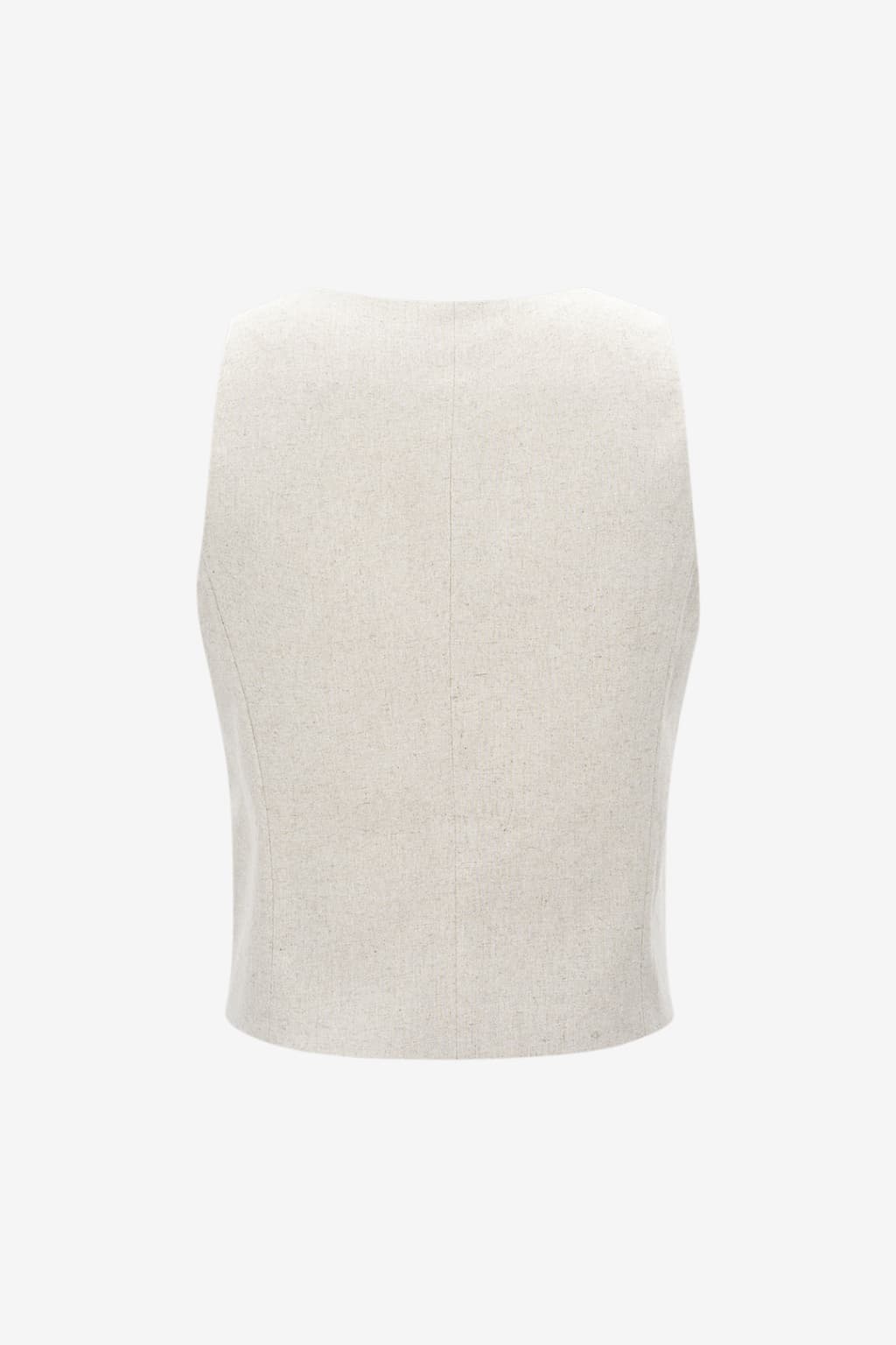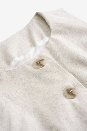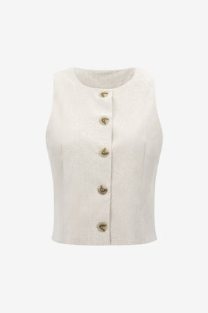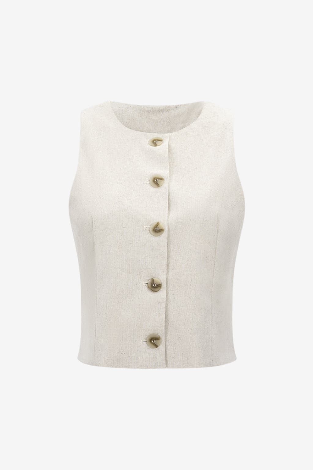 This Women's Sleeveless Button Vest is a fitted outerwear piece with a neutral, casual style. Its lightweight, textured fabric and tailored shape make it suitable for women seeking a practical layer for daily outfits. The vest features a button-down front and a simple neckline for easy wear.- Fitted Shape: Tailored fit, 35.4" bust, 25.2" waist in size S.