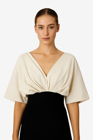 Women's Linen V-Neck Blouson Shirt