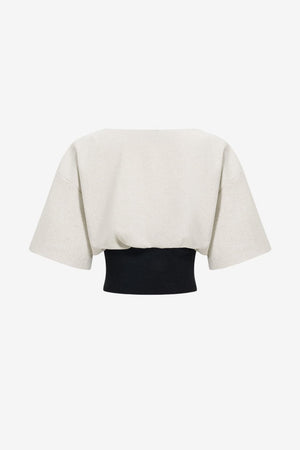 - Two-Tone Structure: Light beige upper with black waistband for contrast.