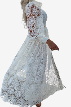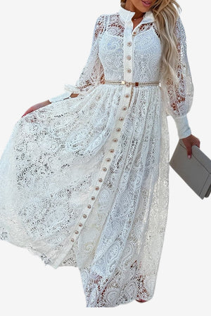 Women’s Long Lace Maxi Dress with Sleeves and Belt