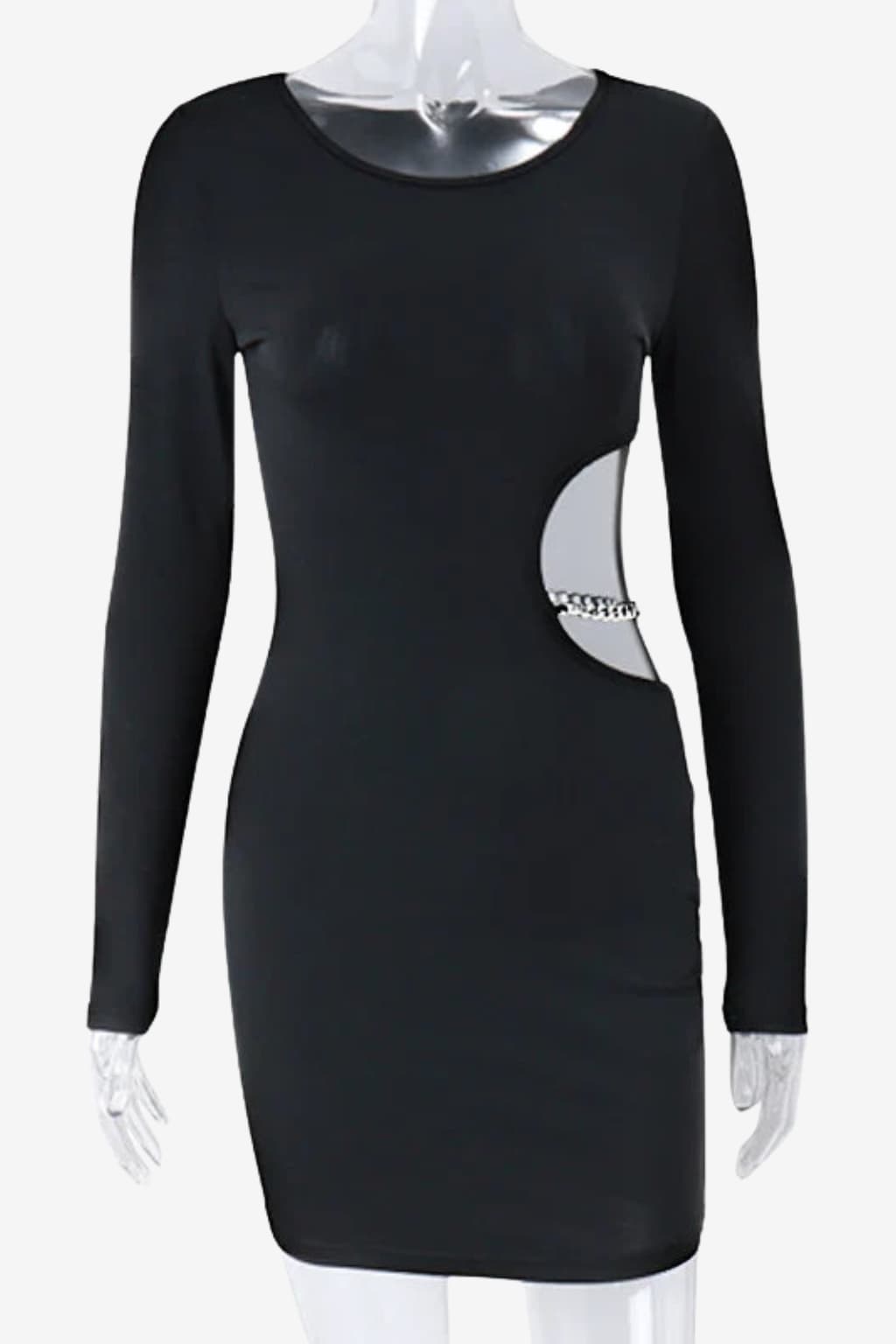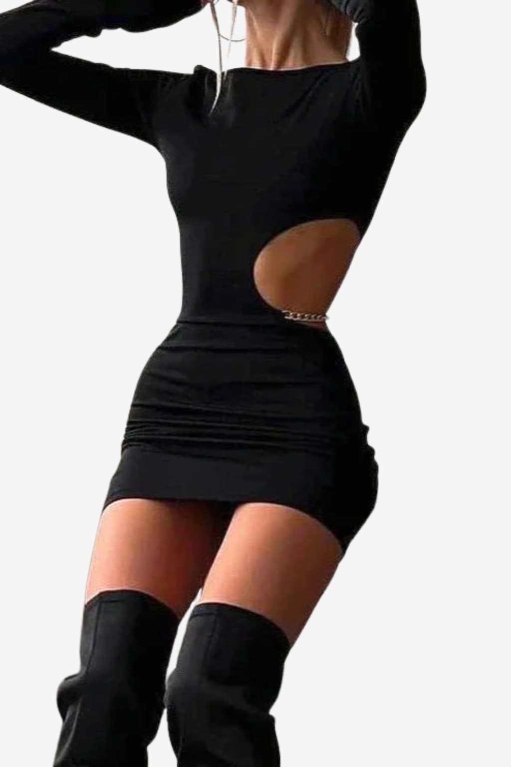 Women's Long Sleeve Bodycon Mini Dress with Side Cutout