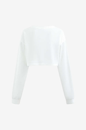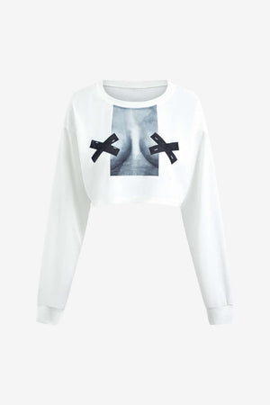 The Women's Long Sleeve Graphic Crop Top is a fitted, semi-sheer top with a striking front graphic. Its lightweight, low-stretch fabric blend offers a smooth texture, ideal for women seeking a casual, modern look with a tailored silhouette.- Fitted Shape: Tailored fit with cropped length above the waistline.