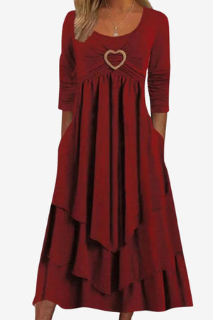 This women’s long sleeve maxi dress presents a relaxed A-line form with measured design elements, making it suitable for routine wear. Featuring a scoop neckline, layered skirt, and understated accents, the dress offers modest proportions with subtle movement. Constructed for multi-season use, it complements various outfit combinations through its smooth surface and flexible cut.- A-line silhouette with empire waist: Includes a gently fitted upper area that transitions into a wider lower section, designed to follow the body without close contact.