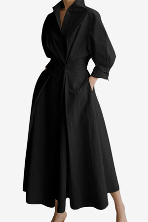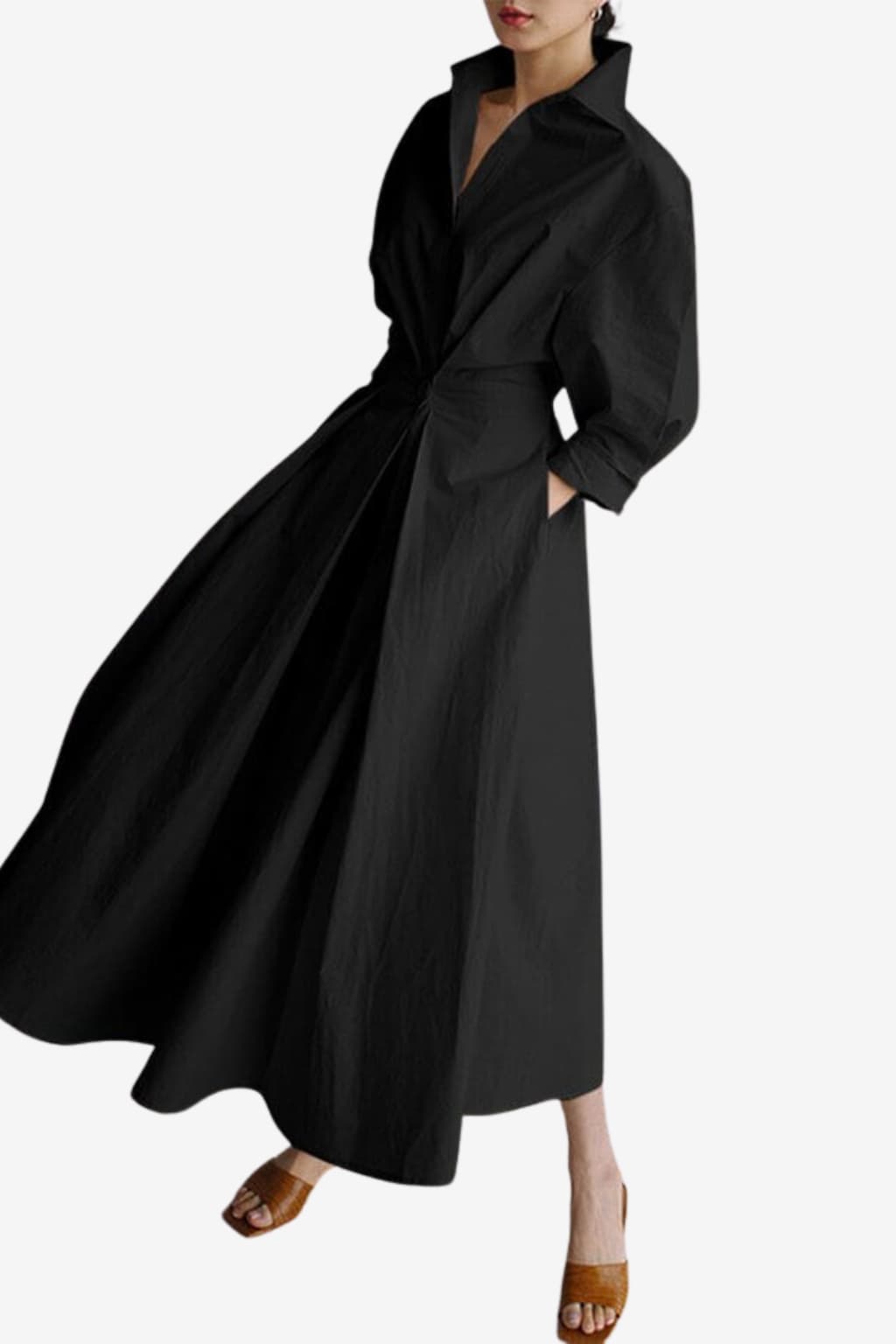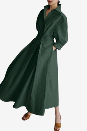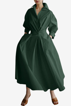 Women’s Long Sleeve Shirt Dress Maxi A-Line Buttoned