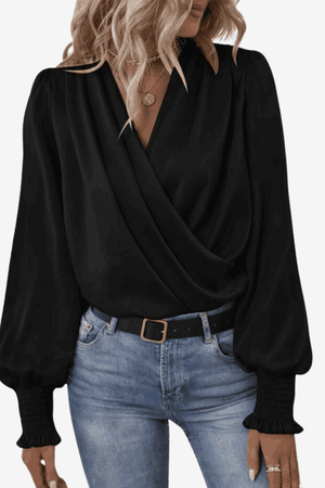 Women's Long-Sleeve Wrap Blouse - Elegant and Versatile