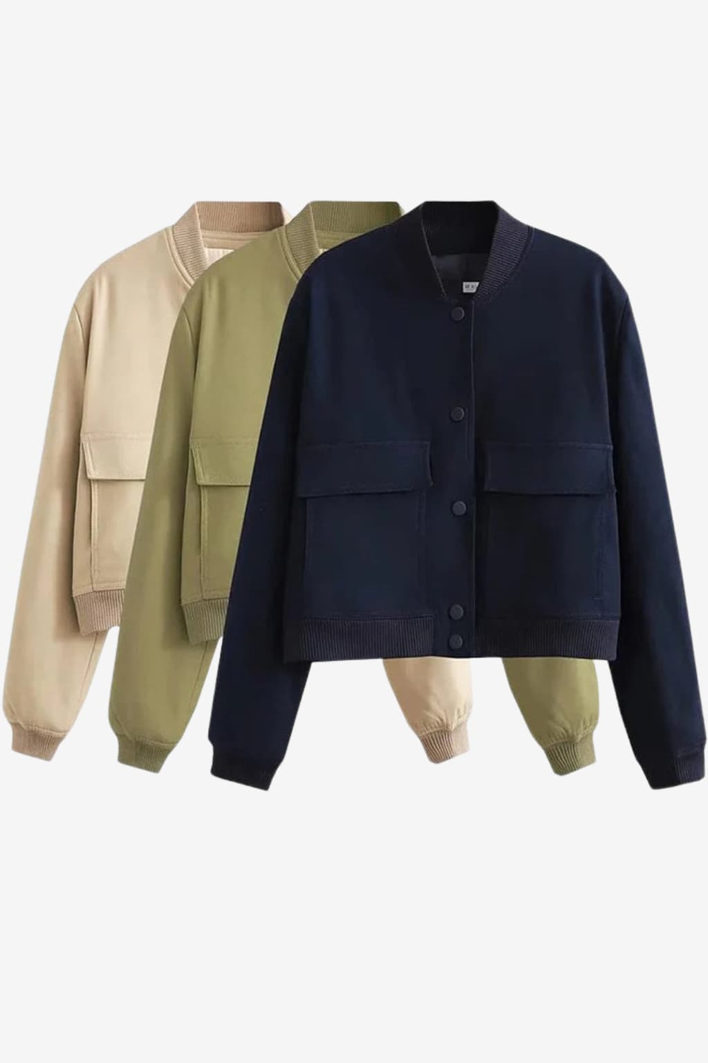- Classic Structure: Includes ribbed collar, cuffs, and hem with button-down closure.