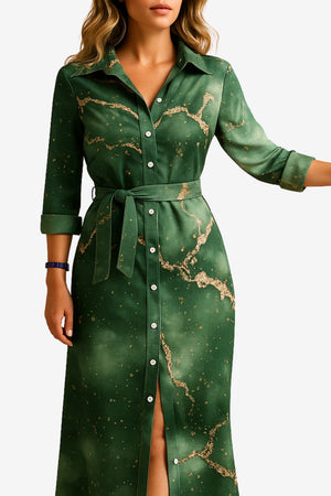 - Collared Neckline: Features a button-down front for a structured, shirt-dress style.
