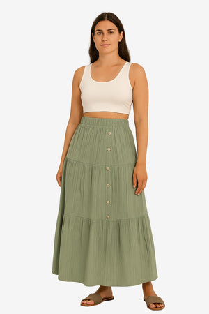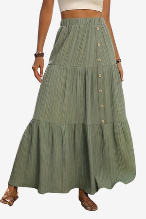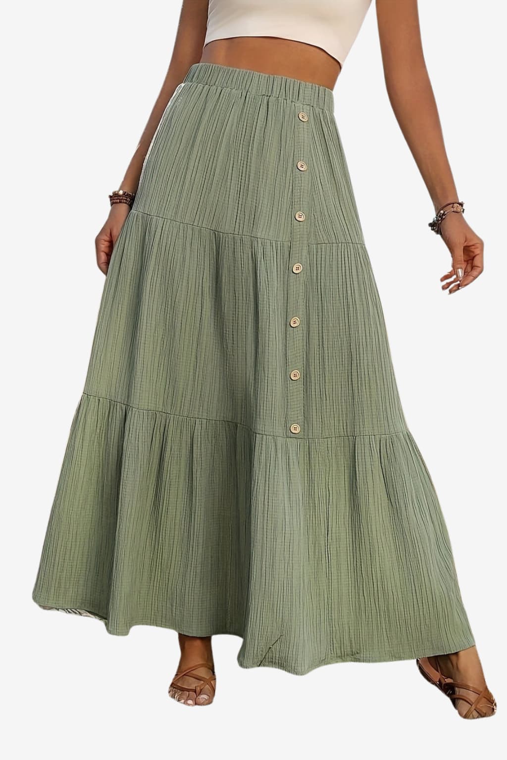 Women’s Maxi Skirt with Button Detail Elastic Waist