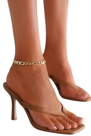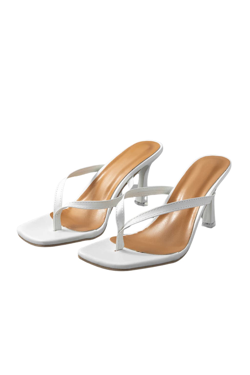 These women’s mid heel thong sandals combine a square front shape with a minimal design, making them appropriate for both casual settings and settings that require a more put-together appearance. Featuring a shaped heel and consistent surface texture, they are made for those who prefer simple footwear with flexible style applications.- Open square toe: Incorporates a defined toe shape with a geometric front for a structured visual form.