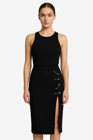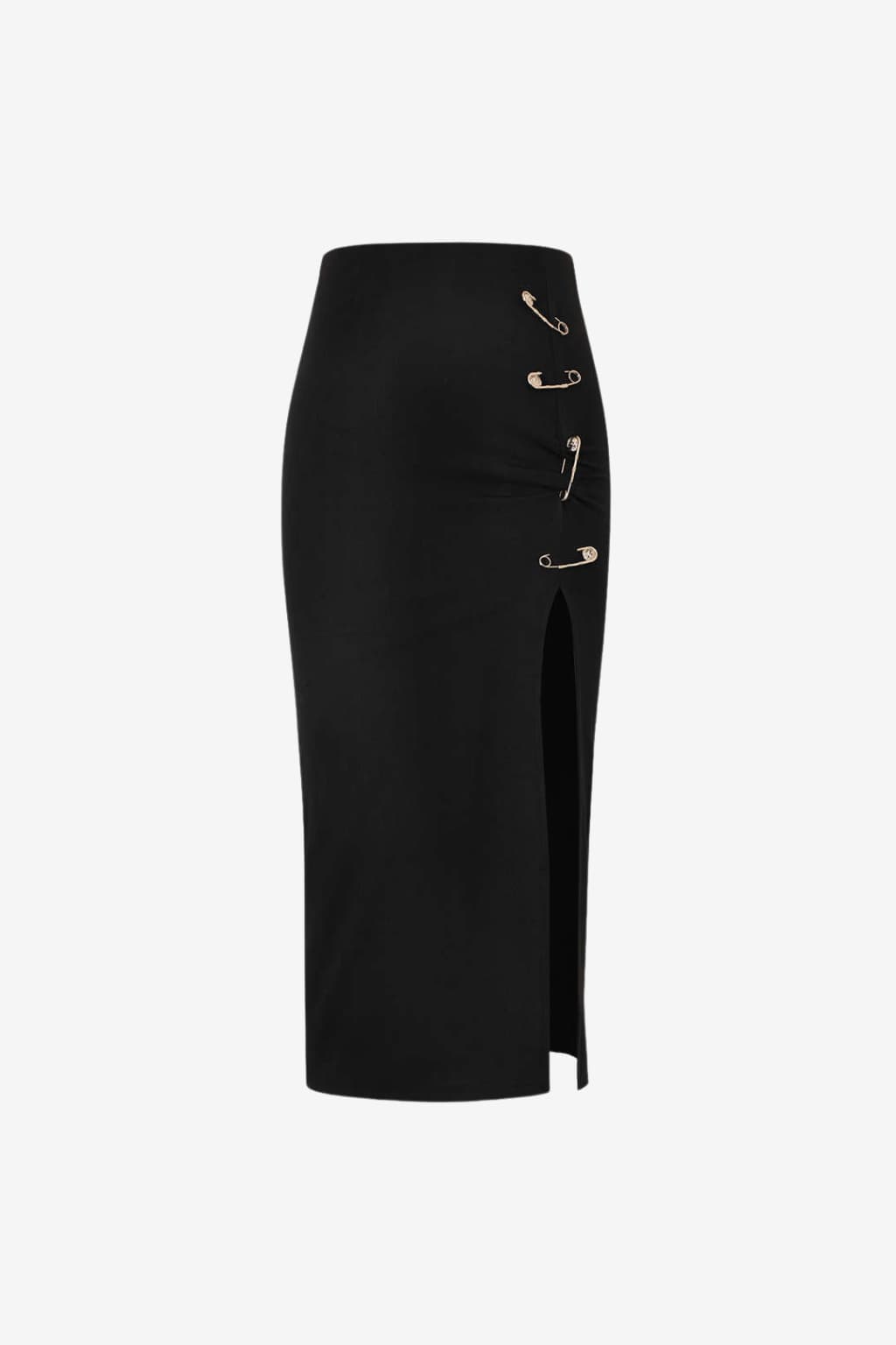 Women's Midi Skirt with Side Slit and Safety Pin Detail