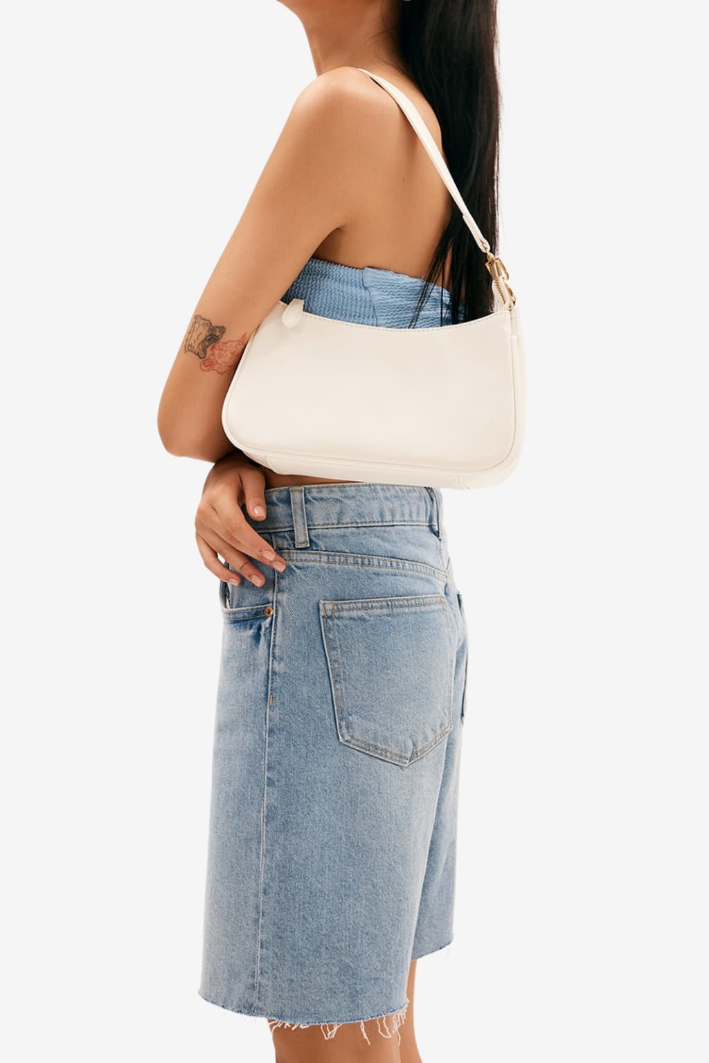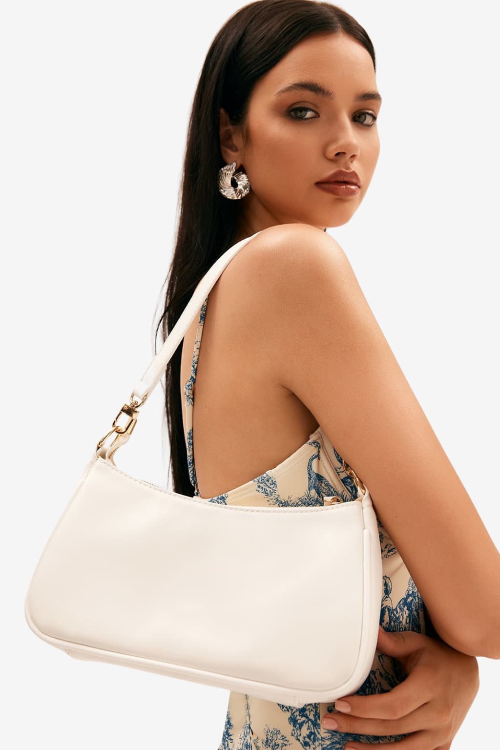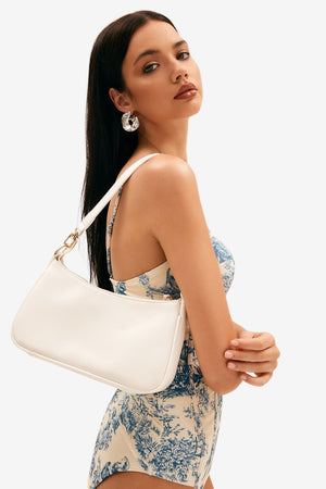 This mini shoulder bag features a rectangular shape with a zippered closure and soft surface texture. Designed for everyday carry, it offers a structured size suitable for storing essentials. The neutral color and single-strap design support a consistent appearance across different outfits and settings.- Compact rectangular shape: A small form that stays close to the body and accommodates essential items.