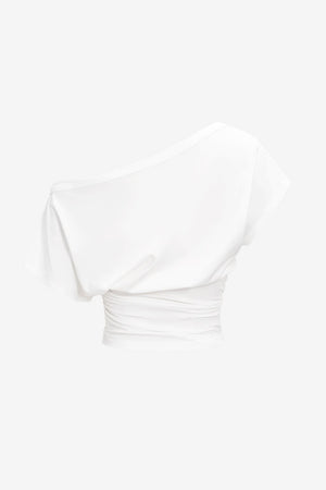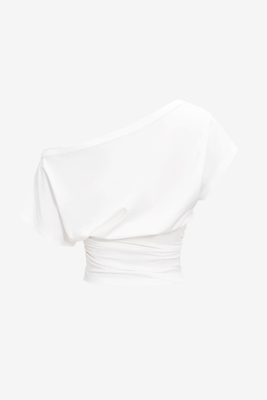 Women's One-Shoulder Short Sleeve White Jersey Top, Fitted, Casual