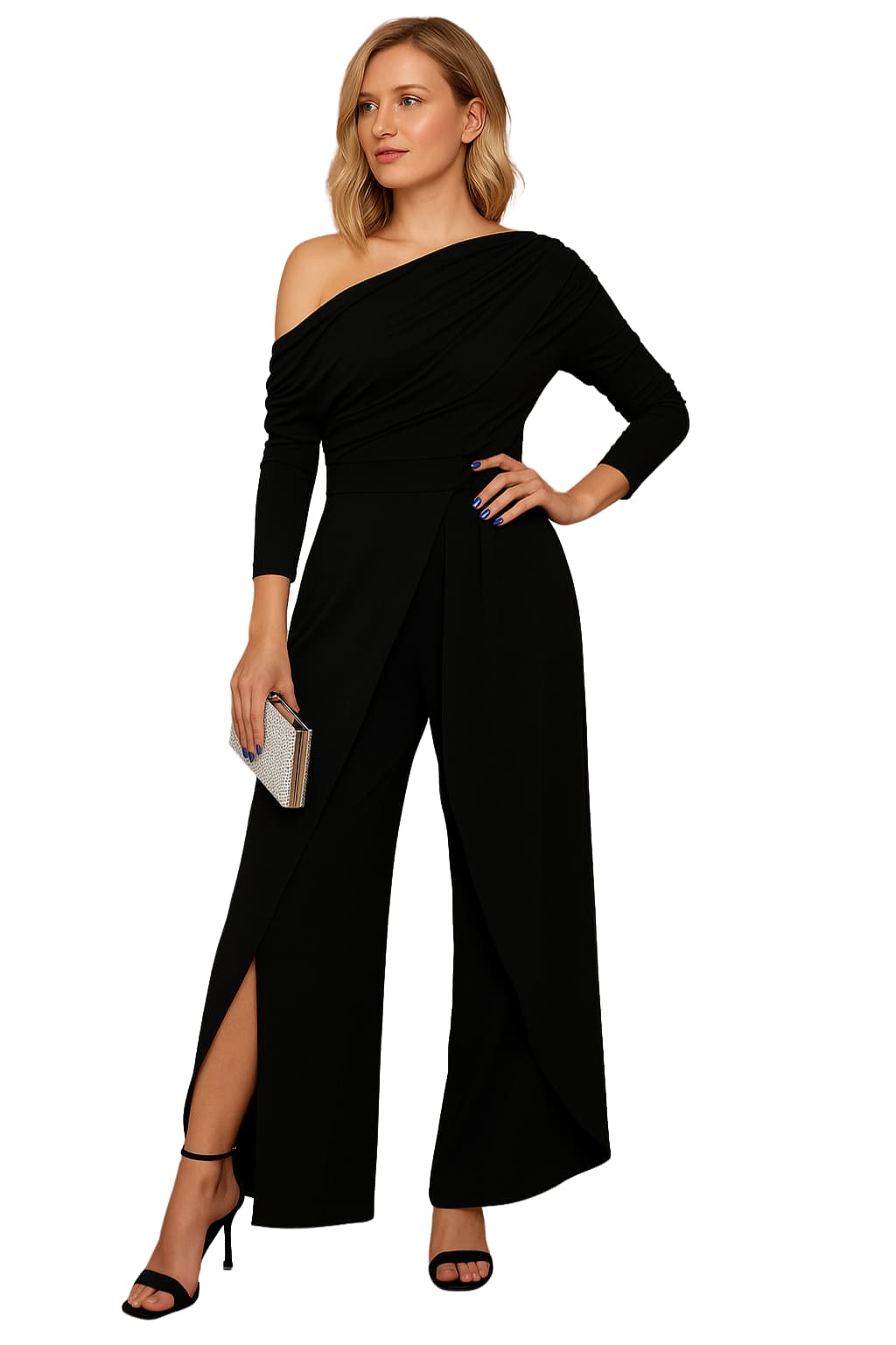 One-Shoulder Jumpsuit with Asymmetrical Neckline and Wide-Leg Shape