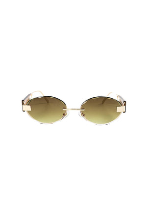 Women’s Oval Metal Sunglasses Gradient Green Lens