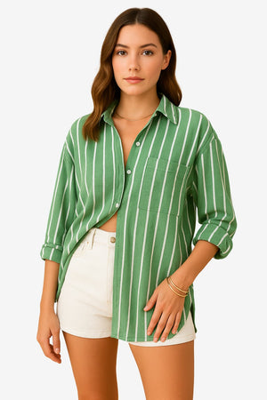 Women’s Oversized Striped Shirt Long Sleeve Cotton Top