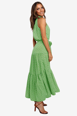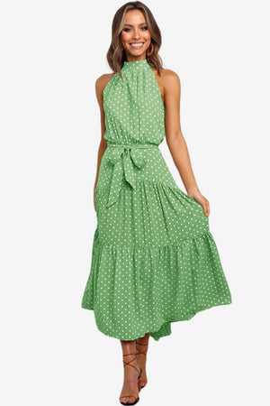 Women’s Polka Dot Halter Midi Dress Sleeveless Fit