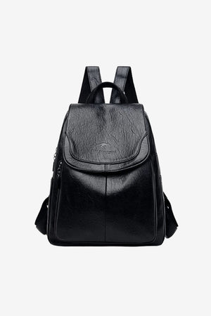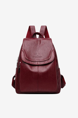 Women's PU Leather Vintage Backpack Flap Closure Adjustable Straps