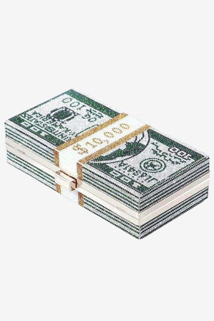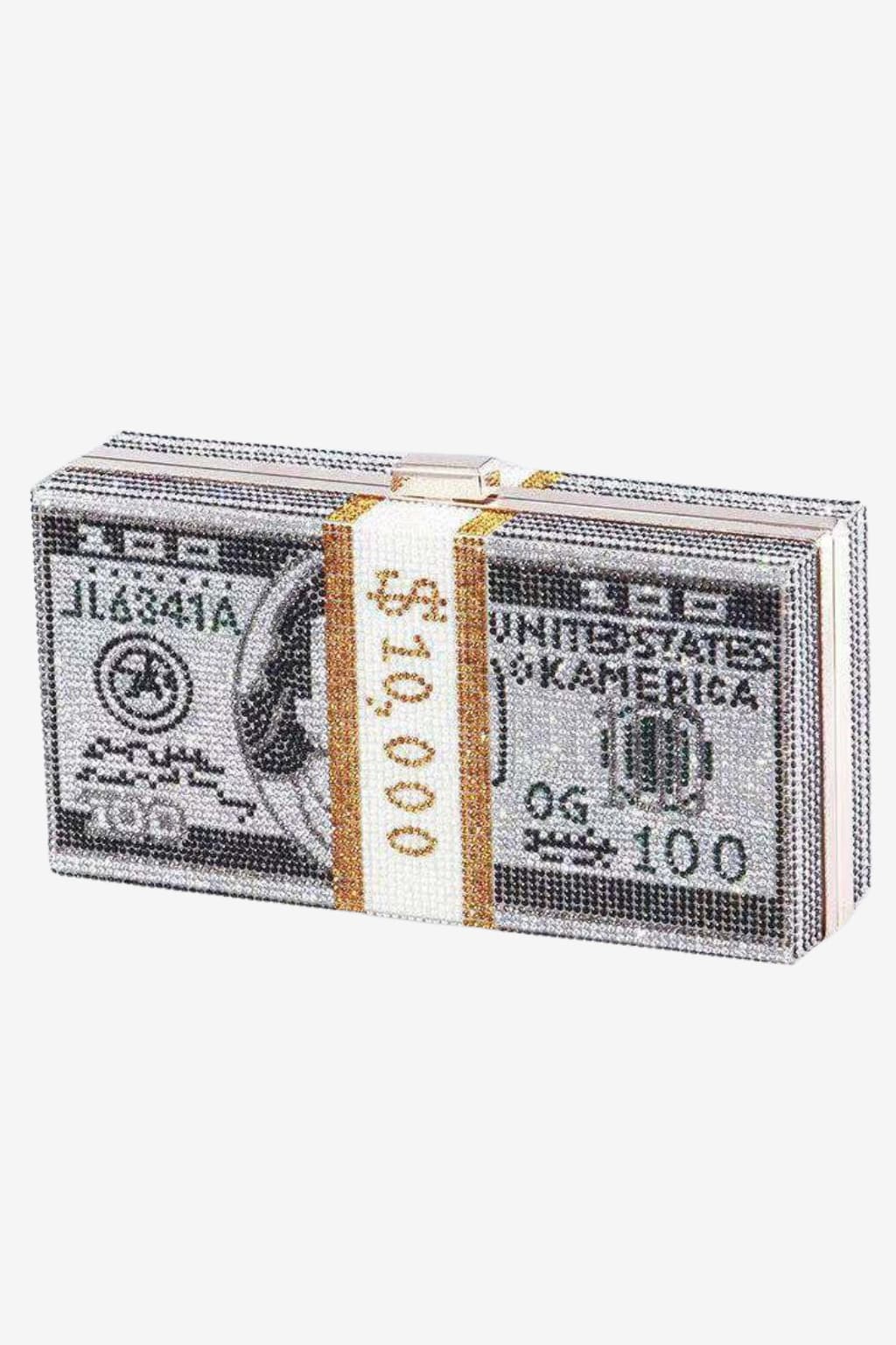 Women's Rhinestone US Dollar Clutch Bag with Chain Strap