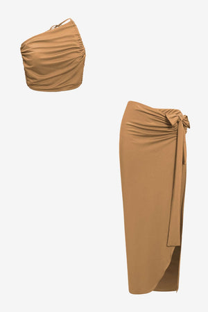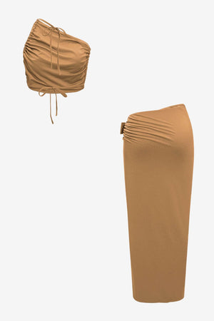 Women's Ruched Crop Top & High-Slit Maxi Skirt Set